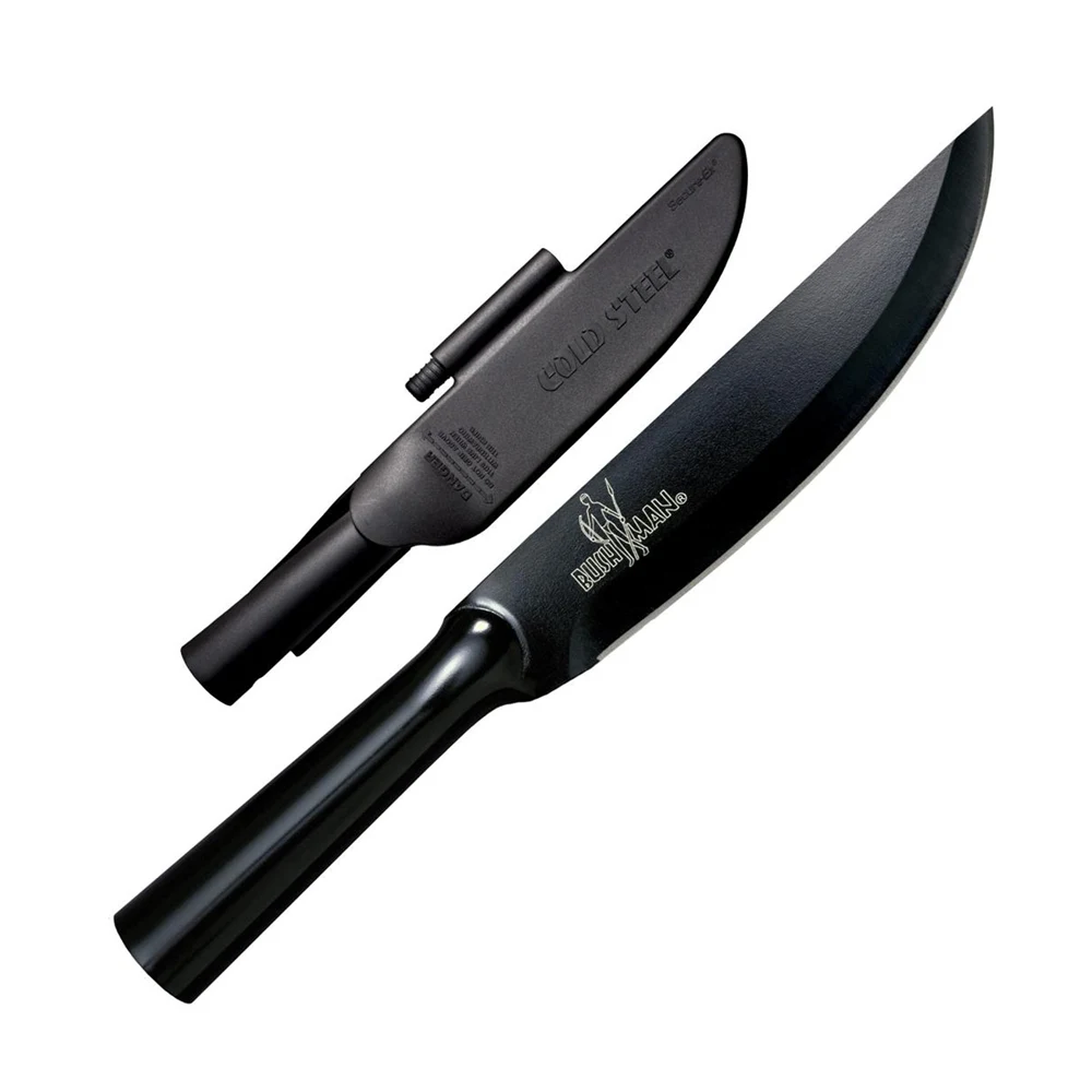 Za uloženi novac, Bushman seriju noževa za preživljavanje teško je nadmašiti! Za razliku od većine noževa sa šupljom ručkom, nema spojeva ili šavova između oštrica i ručke, umjesto toga Bushman oštrica i ručke su hladno iskovane od jednog komada SK-5 visokougljeničnog čelika! Rezultirajući noževi su stručno termički obrađeni i kaljeni na RC54 i, kada su podvrgnuti našim testovima, izdržali su preko dvije tone pritiska na prijelazu između oštrice i ručke! Svaki Bushman je pažljivo izbrušen do izuzetno tanke ivice, a zatim brušen i brušen ručno do oštrine kao britva. Njihove šuplje ručke će prihvatiti zalihe za preživljavanje ili razne produžetke ručke koji mogu maksimalno povećati doseg, polugu ili lakoću bacanja. Dostupni u dva stila oštrica (Standard i Bowie point) i oba imaju zakrivljene oštrice koje su idealne za skidanje kože i mnoštvo poslova. Oba dolaze u kompletu sa Secure-Ex omotačem koji sadrži visokokvalitetno kresivo.
