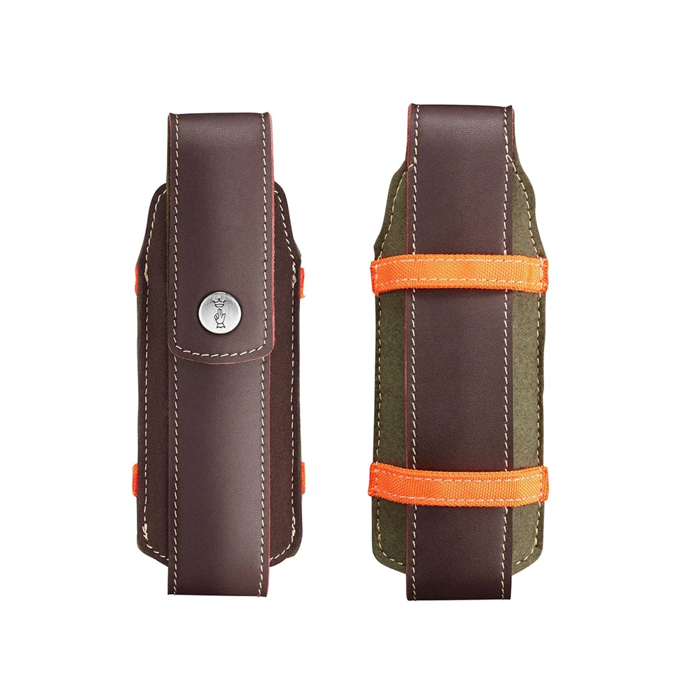 Opinel futrola veličine M odličan je pratilac za svaki Opinel nož. Navlaka se može objesiti za narandžastu traku ili se pričvrstiti na pojas radi dobrog prianjanja. Dostupan u plavoj ili tamno smeđoj sintetičkoj koži s bijelim šavovima i kućištem na kopčanje koje će vaš nož osigurati tokom transporta.