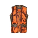 100% poliester, tkanina s vodoodbojnom završnom obradom, podstava od 100% poliesterske mrežaste tkanine. Jastučići za ramena, dvostruka ventilacijska mreža na leđima. 2 velika donja džepa, drukeri za pričvršćivanje, vanjski držač za 12 cijevnih patrona, 2 unutarnja džepa, prsten za lov i torba za lov s vodootpornom i perivom podstavom.